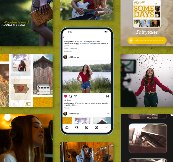 A robust promotional strategy paved the way for the first single release. This included setting up Facebook, Instagram and TikTok accounts. In a matter of months, Addilyn’s audience grew to a few thousand followers. In addition to boosting social media through paid efforts, we create lyric videos, music video clips, graphics and photos as supplemental content.